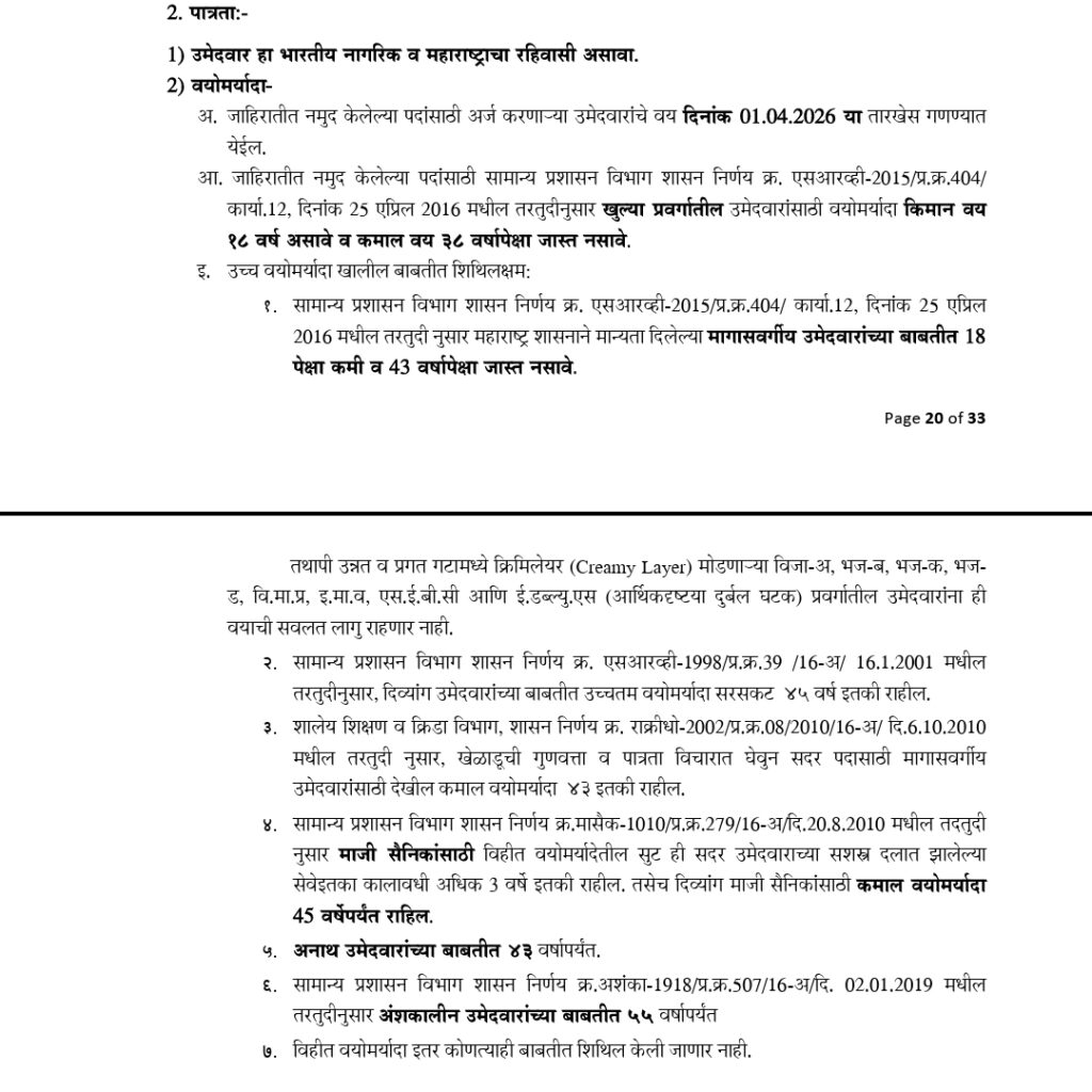 वयोमर्यादा पाहण्यासाठी खालील संपूर्ण चार्ट पहा