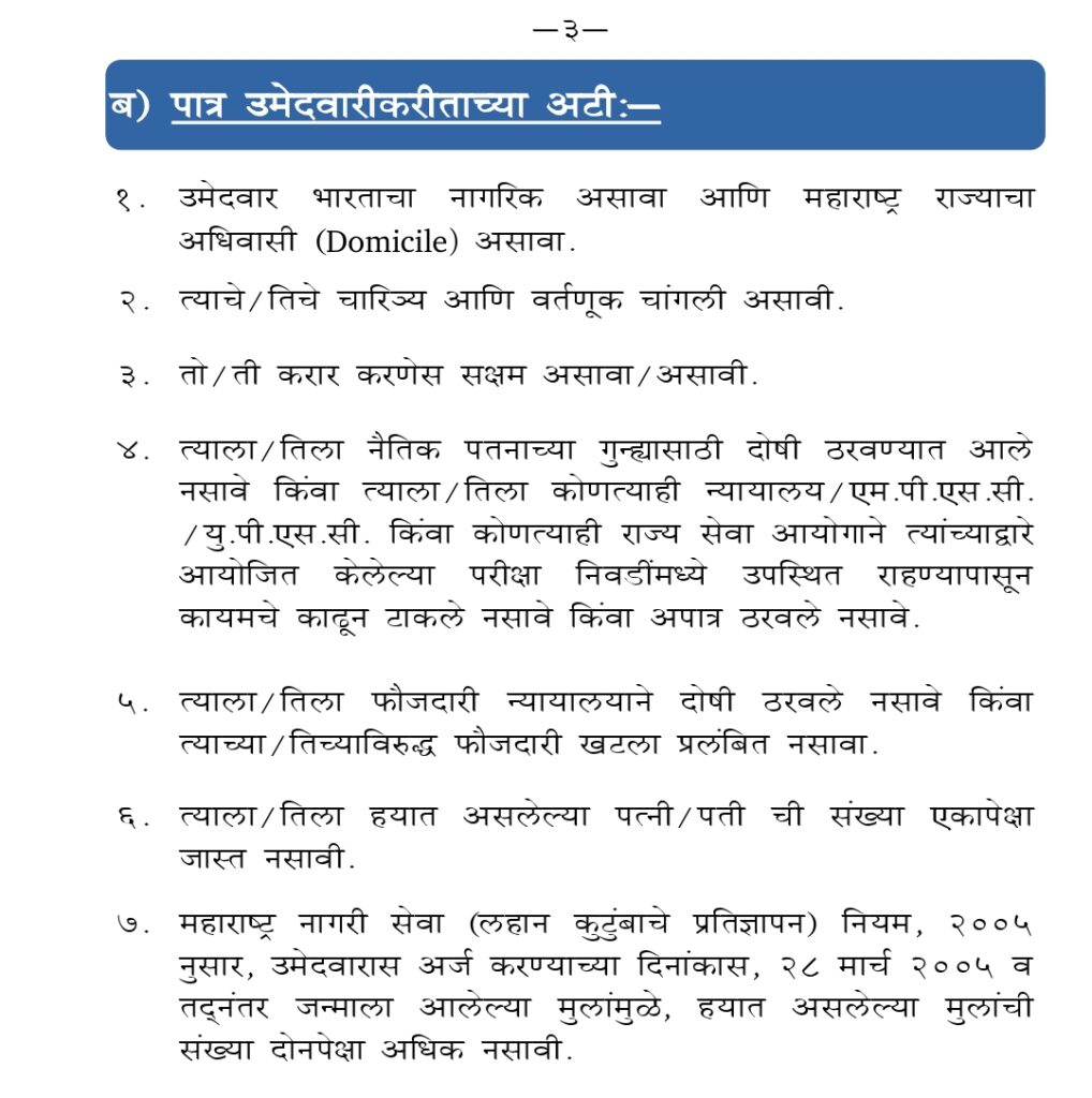 २. उमेदवारास मराठी व हिंदी भाषा लिहिता, वाचता व बोलता येणे आवश्यक आहे..